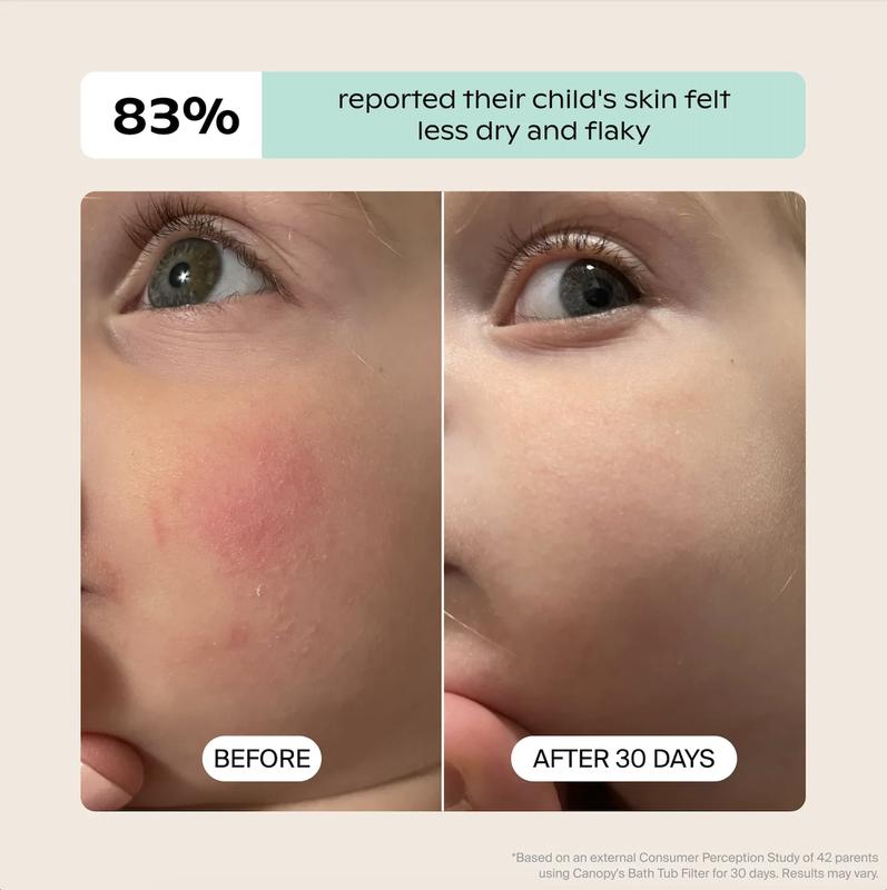 By improving water quality at the source, it helps reduce dryness and irritation often caused by harsh tap water—especially important for babies with sensitive or easily irritated skin.
